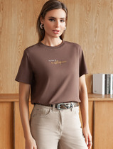 Vilatte Футболка из премиального хлопка с авторским принтом D49.110 т. кофейный_