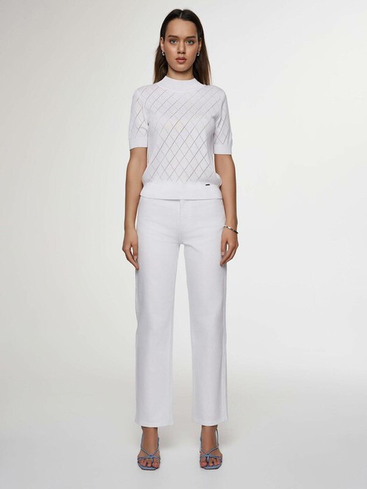 Классические белые джинсы straight подойдут девушкам с разными типами фигуры: благодаря высокой посадке, прилеганию в области бедер и прямому крою штанин модель отлично подчеркивает силуэт.