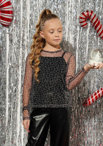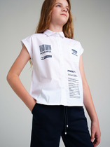 Блузка с воланом для девочки. Изготовлена из высококачественного трикотажного полотна. Оригинальная набивка выполнена из стойких текстильных гипоаллергенных красителей. Блузка сохраняет форму и стойкий цвет после многочисленных стирок и идеально подходит на каждый день. Все трикотажные полотна производятся в соответствии с нормами швейцарского сертификата ЭкоТекс.