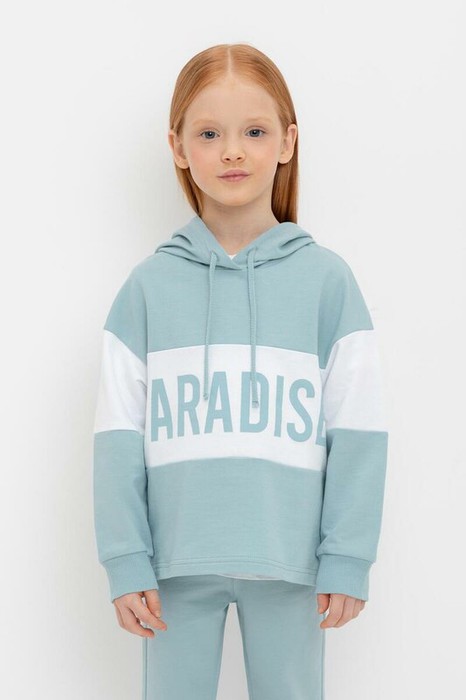 Толстовка с капюшоном для девочки из петельчатого футера . Принт выполнен из высококачественных текстильных красителей.