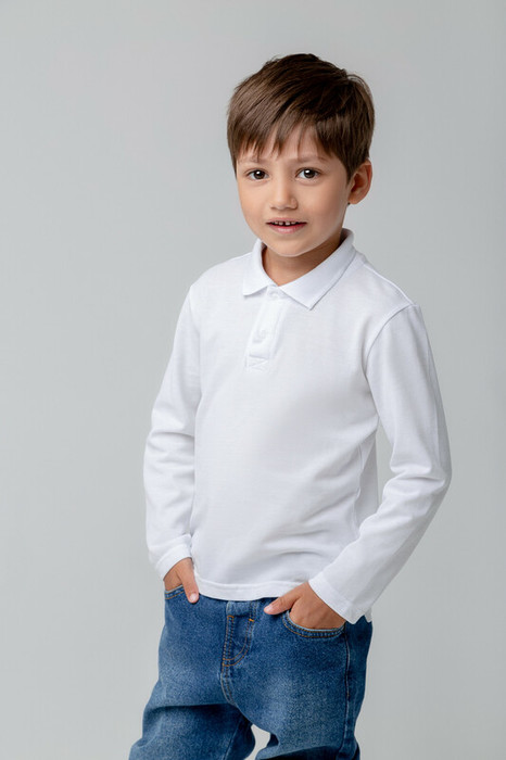 Поло для мальчика из высококачественного трикотажного полотна пике. У изделия вязаный воротник, манжеты и застежка спереди на пуговицы.