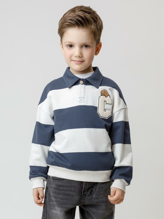 Свитшот с воротником для мальчика. Изготовлен из высококачественного петельчатого футера. Манжеты и пояс выполнены из эластичного полотна. На груди застёжка на пуговицу. Изделие сохраняет цвет и форму после многократных стирок.