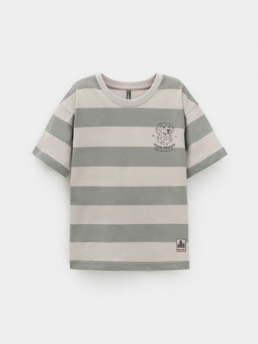 Crockid фуфайка (футболка) для мал КР 302914/оливковый,серо-бежевый,полоска к642