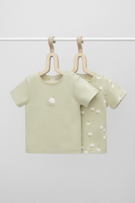 Футболки для девочки в упаковке 2 шт из высококачественного трикотажного полотна. Оригинальная набивка выполнена из стойких гипоаллергенных текстильных красителей. Для удобства на плече застежка на кнопки.