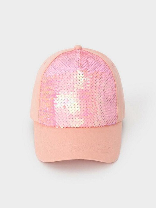 Кепка для девочки из натурального хлопка. Спереди украшена пайетками. Регулируется по ширине головы и фиксируется на затылке с помощью металлического зажима.