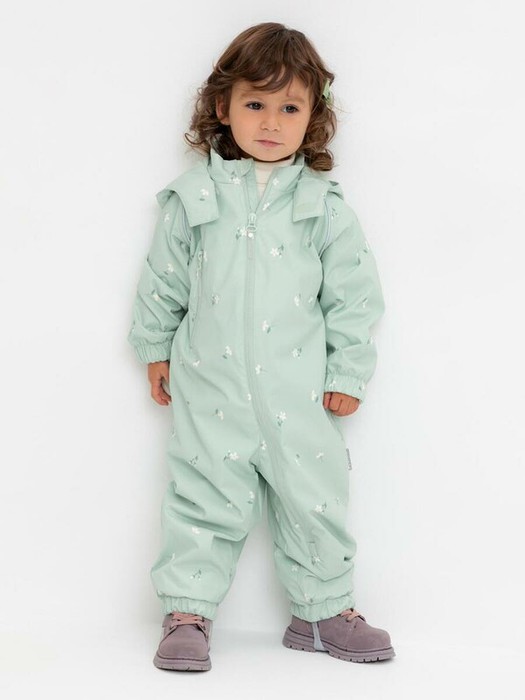 Ветровочный комбинезон ясельный из мембранной ткани с дополнительной тефлоновой обработкой. Данный вид обработки предохраняет изделие от загрязнения и лучше отводит влагу. Подклад из 100% хлопка. У изделия удлиненная молния для легкого одевания с защитой подбородка. Утяжка на капюшоне с потайными стопперами. По низу рукавов и брючин, а также на спинке изделия эластичная резинка для лучшего прилегания. Для фиксации комбинезона используются съемные силиконовые штрипки. В размерах 68-74, 74-80 функциональные отвороты на рукавах и брючинах. Во всех изделиях верхнего ассортимента для безопасности ребенка предусмотрены светоотражающие элементы.