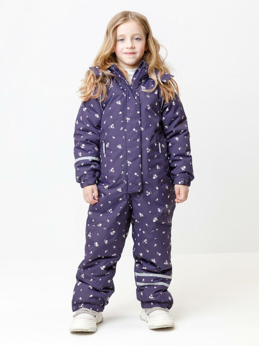 Зимний комбинезон для девочки с утеплителем Fellex®: 250 г/м2 . Выполнен из мембранной ткани с дополнительной тефлоновой обработкой, которая предохраняет изделие от загрязнений и отталкивает влагу. Подклад выполнен из 100% полиэстера Tricot. Комбинезон застёгивается на молнию и внешнюю планку на липучках и кнопках, предусмотрена защита подбородка. Съёмный капюшон имеет эластичную утяжку со стопперами и отстёгивающийся искусственный мех. Резинка по спинке обеспечивает лучшее прилегание. По бокам два кармана на молнии. Эластичные манжеты на рукавах  регулируются по ширине с помощью липучки, по низу изделия - с помощью кнопки. Внутренняя противоснежная юбка защищает обувь от попадания снега и удерживает комбинезон в закреплённом положении, предусмотрены отстёгивающиеся штрипки. Во всех изделиях верхнего ассортимента для безопасности ребёнка предусмотрены светоотражающие элементы.