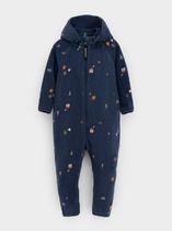 Комбинезон для новорождённых из тонкого трикотажа с начёсом, произведённого из натурального хлопка. Застёгивается спереди на молнию с защитой подбородка. Оригинальная набивка выполнена из стойких гипоаллергенных текстильных красителей. Все трикотажные полотна производятся в соответствии с нормами Швейцарского сертификата ЭкоТекс.