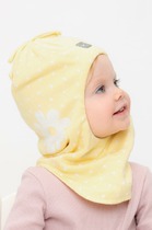 Комплект для мальчика - шапка и снуд из трикотажа рибана с эластаном. Шапка с удлинённой скругленной макушкой. Снуд сплошной. Украшены набивным рисунком и жаккардовой нашивкой.