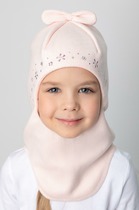 Комплект для девочки: шапка и снуд из хлопкового трикотажа в рубчик с добавлением эластана, окрашенного стойкими гипоаллергенными текстильными красителями. Изделия хорошо тянутся, после многократных стирок сохраняют цвет и форму.
