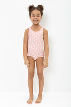 Купальный костюм для девочки. Верхняя часть застёгивается на молнию. В плавках эластичная резинка. Внутри подклад. Оригинальная набивка выполнена из стойких гипоаллергенных красителей.