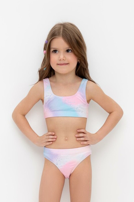 Раздельный купальник для девочки. Топ на эластичных лямках и плавки на резинке . Оригинальная набивка выполнена из стойких гипоаллергенных красителей.