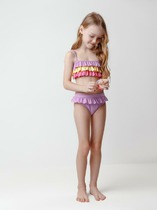 Слитный купальник на лямках для девочки. Украшен оборками. Внутри подклад. Оригинальная набивка выполнена из стойких гипоаллергенных красителей.