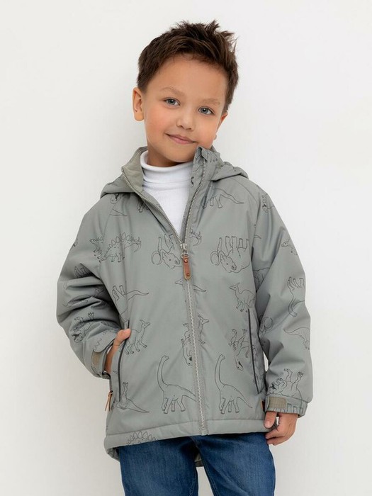 Демисезонная куртка для мальчика с утеплителем SEE®: 120 г/м2. Выполнена из мембранной ткани с дополнительной тефлоновой обработкой. Данный вид обработки предохраняет изделие от загрязнения и лучше отводит влагу. Подклад из 100% полиэстера. У изделия предусмотрена защита подбородка. Несъемный капюшон имеет эластичную резинку для лучшего прилегания. Эластичные манжеты регулируются по ширине при помощи липучек. Низ изделия регулируется эластичной утяжкой со стопперам. Во всех изделиях верхнего ассортимента для безопасности ребенка предусмотрены светоотражающие элементы.