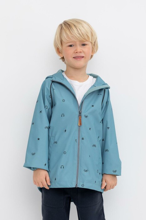 Ветровка для мальчика из мембранной ткани с дополнительной тефлоновой обработкой.  Верхняя мембранная ткань 1000/1000 с тефлоновым покрытием отталкивает воду и грязь и обладает «дышащими» свойствами. Подкладка выполнена 60% хлопка и 40% полиэстера. У изделия предусмотрена защита подбородка. Несъемный капюшон регулируется с помощью эластичного шнура со стопперами. Низ рукавов имеет эластичную резинку для лучшего прилегания. Во всех изделиях верхнего ассортимента для безопасности ребенка предусмотрены светоотражающие элементы.