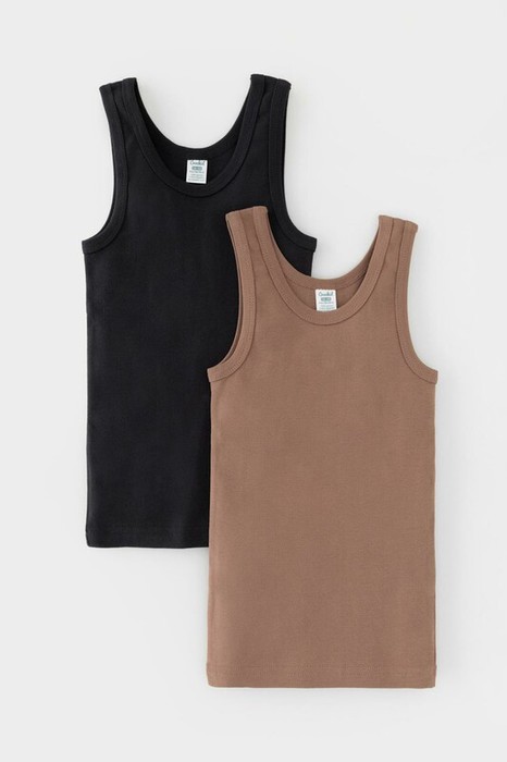 Трикотажные майки в комплекте 2 шт на лямках из натурального хлопка. Изделие сохраняет цвет и форму после многократных стирок. Все трикотажные полотна производятся в соответсвии с нормами Швейцарского сертификата ЭкоТекс.