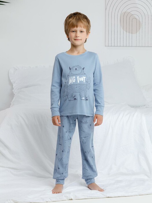 Трикотажная пижама из натурального хлопка. Джемпер с длинными втачными рукавами и брюки с эластичной резинкой в поясе. Мягкие манжеты на рукавах и по низу брюк. Оригинальная набивка и принт выполнены из стойких текстильных гипоаллергенных красителей. Изделие сохраняет цвет и форму после многократных стирок. Все трикотажные полотна производятся в соответствии с нормами швейцарского сертификата ЭкоТекс.