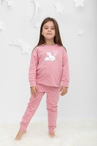 Трикотажная пижама из натурального хлопка. Джемпер с длинными втачными рукавами и брюки с эластичной резинкой в поясе. Мягкие манжеты на рукавах и по низу брюк. Оригинальная набивка и принт выполнены из стойких текстильных гипоаллергенных красителей. Изделие сохраняет цвет и форму после многократных стирок. Все трикотажные полотна производятся в соответсвии с нормами швейцарского сертификата ЭкоТекс.