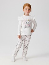 Трикотажная пижама из натурального хлопка. Джемпер с длинными втачными рукавами и брюки с эластичной резинкой в поясе. Мягкие манжеты на рукавах и по низу брюк. Оригинальная набивка выполнена из стойких текстильных гипоаллергенных красителей. Изделие сохраняет цвет и форму после многократных стирок. Все трикотажные полотна производятся в соответствии с нормами швейцарского сертификата ЭкоТекс.