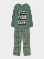 Трикотажный пижамный комплект из футера с начёсом, произведённого из натурального хлопка. У джемпера длинные рукава со спущенными плечами и эластичная мягкая горловина и манжеты. Брюки с удобным поясом на резинке, внизу манжеты. Оригинальная набивка и принт выполнены из стойких, гипоаллергенных текстильных красителей. Все трикотажные полотна производятся в соответствии с нормами Швейцарского сертификата ЭкоТекс.