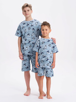 Трикотажная пижама из натурального хлопка. У футболки рукава и низ изделия обработаны микрооверлоком. У шорт в комплекте мягкий, эластичный пояс на резинке. Оригинальная набивка выполнена из стойких, гипоаллергенных текстильных красителей. Комплект сохраняет цвет и форму после многократных стирок. Все трикотажные полотна производятся в соответсвии с нормами Швейцарского сертификата ЭкоТекс.