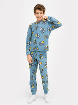 Трикотажная пижама из натурального хлопка. Джемпер с длинными рукавами с эластичными манжетами. У брюк эластичный пояс на резинке. Оригинальная набивка и принт выполнены из стойких, гипоаллергенных текстильных красителей. Пижама сохраняет цвет и форму после многократных стирок. Все трикотажные полотна производятся в соответствии с нормами Швейцарского сертификата ЭкоТекс.