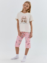 Пижама для девочки из натурального хлопка. Джемпер с длинными втачными рукавами и прямые брюки с эластичной резинкой в поясе. Оригинальная набивка выполнена из стойких текстильных гипоаллергенных красителей. Изделие сохраняет цвет и форму после многократных стирок. Все трикотажные полотна производятся в соответствии с нормами швейцарского сертификата ЭкоТекс.
