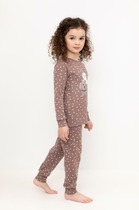 Новогодняя пижама из натурального хлопка.  Джемпер с длинными втачными рукавами и брюки с эластичной резинкой в поясе. Мягкие манжеты на рукавах и по низу брюк. Пижама отлично подойдёт для создания уютных домашних образов или в качестве подарка на Новый год и Рождество. Оригинальная набивка выполнена из стойких текстильных гипоаллергенных красителей. Изделие сохраняет цвет и форму после многократных стирок. Все трикотажные полотна производятся в соответствии с нормами швейцарского сертификата ЭкоТекс.