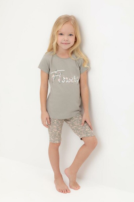 Трикотажная пижама для девочки с футболкой и велосипедками. Удлинённая футболка изготовлена из гладкого трикотажа супрем. Велосипедки выполнены из эластичного трикотажа в рубчик. Оригинальная набивка и принт выполнены из стойких текстильных гипоаллергенных красителей. Изделие сохраняет цвет и форму после многократных стирок. Все трикотажные полотна производятся в соответсвии с нормами швейцарского сертификата ЭкоТекс.