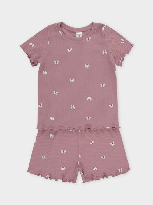 Трикотажная пижама в рубчик из натурального хлопка. Футболка с короткими втачными рукавами и шорты с эластичной резинкой в поясе. Оригинальная набивка выполнена из стойких текстильных гипоаллергенных красителей. Изделие сохраняет цвет и форму после многократных стирок. Все трикотажные полотна производятся в соответсвии с нормами швейцарского сертификата ЭкоТекс.
