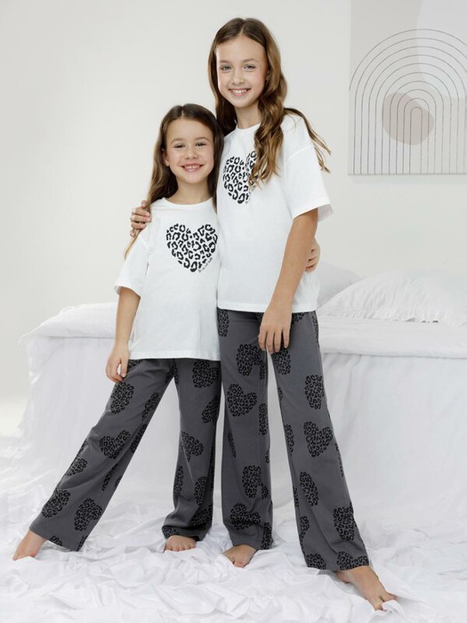 Трикотажная пижама из натурального хлопка для комфортного сна и отдыха. Свободная футболка с короткими рукавами и прямые брюки с мягкой эластичной резинкой в поясе. Оригинальный принт и набивка выполнены из стойких текстильных гипоаллергенных красителей. Изделие сохраняет цвет и форму после многократных стирок. Все трикотажные полотна производятся в соответствии с нормами швейцарского сертификата ЭкоТекс.