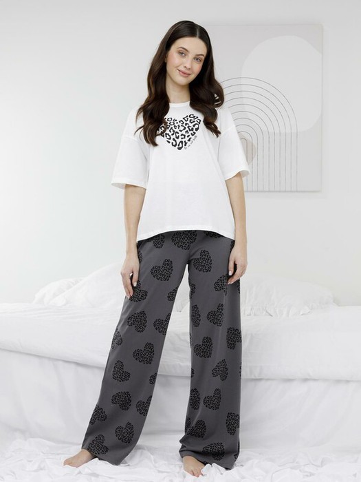 Трикотажная пижама из натурального хлопка для комфортного сна и отдыха. Свободная футболка с короткими рукавами и прямые брюки с мягкой эластичной резинкой в поясе. Гладкий материал приятен к телу, не теряет форму и позволяет коже дышать. Оригинальный принт и набивка выполнены из стойких текстильных гипоаллергенных красителей. Все трикотажные полотна производятся в соответствии с нормами швейцарского сертификата ЭкоТекс.