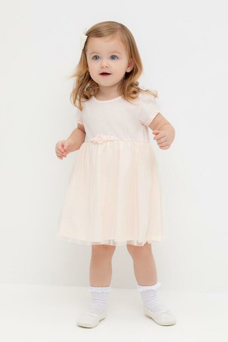Нарядное платье с боди для девочки. Изготовлено из высококачественного хлопкового трикотажа супрем. Поверх юбки лёгкая сетка. Удобные застёжки расположены на спинке и по низу изделия. Спереди украшено декоративными розочками. Изделие сохраняет цвет и форму после многократных стирок.