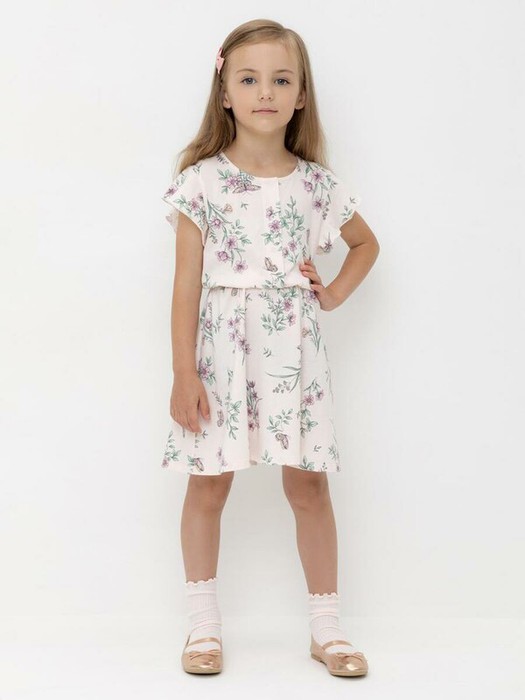 Платье для девочки из высококачественного трикотажа супрем. Верх украшен изящными крылышками. Для удобства одевания платье застёгивается на кнопки спереди. Платье сохраняет форму и стойкий цвет после многочисленных стирок и идеально подходит на каждый день.