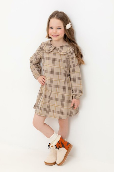 Совместные покупки Омск Детская одежда Платья — Crockid платье для дев КР 5890/тем.бежевый,текстильная клетка к493