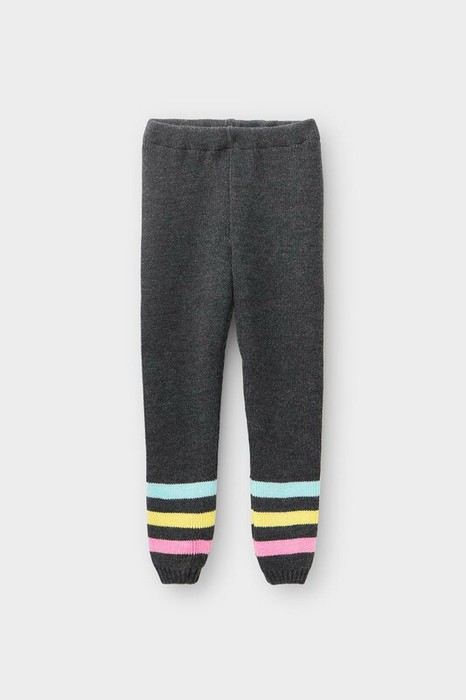 Серые вязаные рейтузы, по низу украшены яркими цветными полосами. В поясе - эластичная резинка.