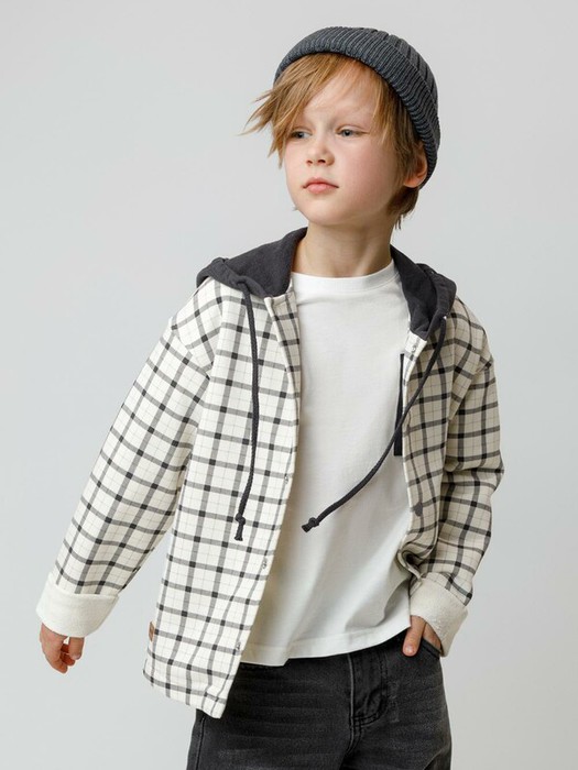 Свободная трикотажная рубашка для мальчика из мягкого петельчатого футера. В составе 80% натурального хлопка и 20% полиэстера, при этом полиэстер ввязан внутрь по особой технологии и не соприкасается с кожей. Застёгивается на кнопки. Модель с капюшоном и спущенным плечом. Рисунок в клетку выполнен из стойких текстильных гипоаллергенных красителей. Изделие сохраняет цвет и форму после многократных стирок. Все трикотажные полотна производятся в соответствии с нормами швейцарского сертификата ЭкоТекс.
