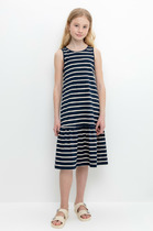 Летний сарафан на бретелях для девочки. Изготовлен из высококачественного трикотажного полотна. Изделие сохраняет цвет и форму после многократных стирок.