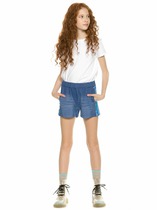Трикотажные шорты с карманами для девочки из петельчатого футера. Эластичный пояс на резинке регулируется по ширине с помощью шнурка, по бокам два удобных кармана.