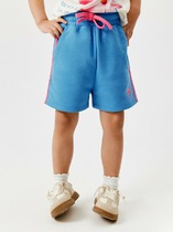 Трикотажные шорты для девочки из петельчатого футера. Эластичный пояс на резинке регулируется по ширине с помощью шнурка, по бокам два удобных кармана.