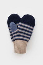 Варежки в полоску из полушерстяной пряжи. Эластичные манжеты фиксируют перчатку на руке.