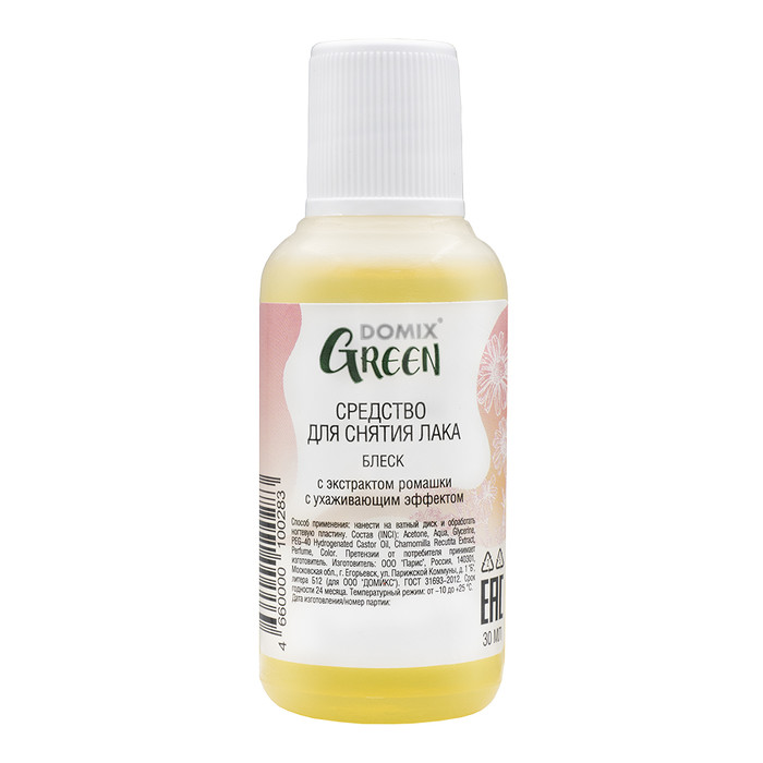 Совместные покупки Омск Косметика и парфюмерия Прочее — Domix Green Блеск 30мл пл Средство д/сн.лака с экстр.ромашки с ухажив.эффектом