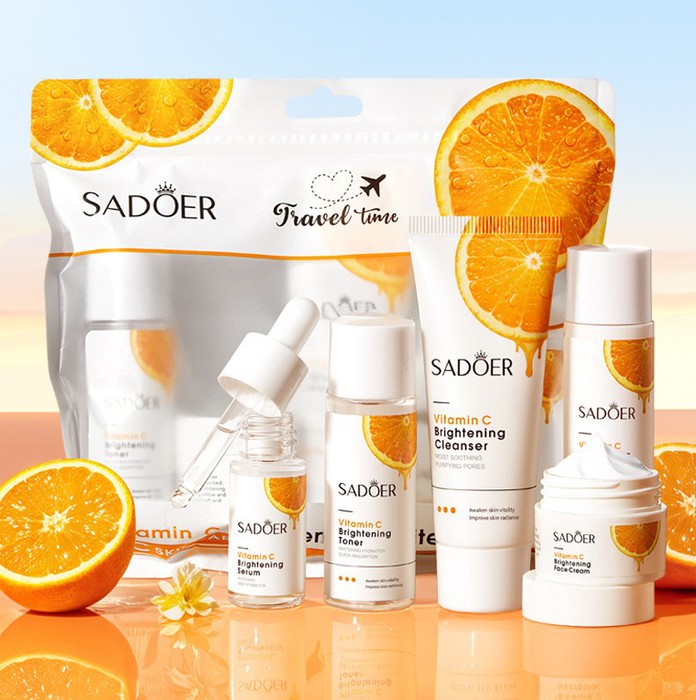 1. Пенка для умывания 30 гр. Бережно очищает, придает энергетический заряд коже и обладает отбеливающим и действием. Благодаря витамину С, стимулирует синтез коллагена, укрепляющего кожу лица.Способ применения: Нанесите пенку на влажную кожу легкими массирующими движениями, после чего умойтесь теплой водой.2. Тонер для лица 30 мл.Успокаивает и тонизирует кожу лица, сохраняет кожу увлажненной в течение 24 часов, нормализуя водно-жировой баланс.Способ применения: После очищения кожи от косметики нанесите небольшое количество тонера на ватный диск и протрите им лицо.3. Лосьон для лица, 30 мл.Делает кожу сияющей. Способ применения: На очищенное лицо нанесите несколько капель на лицо, мягко помассируйте до полного впитывания.4. Сыворотка для лица 10 мл.Сыворотка для лица с содержанием витамина С пробуждает тусклую и уставшую кожу. Витаминная сыворотка для лица наполняет кожу жизненной энергией и возвращает ей свежий, сияющий вид, делает кожу более гладкой.Способ применения: нанести несколько капель сыворотки на очищенную и тонизированную кожу лица, шеи и декольте легкими массажными движениями.5. Увлажняющий крем для лица с витамином С, 15 гр. Интенсивно увлажняет и смягчает кожу лица, устраняя сухость и шелушение, возвращая коже тонус и здоровое сияние.Способ применения: Нанесите крем легкими массажными движениями на кожу лица, шеи и зоны декольте. Средство можно использовать утром и вечером.
