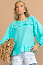 - спущенные рукава 3/4 украшенные декоративной тесьмой