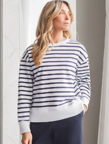 Vilatte Джемпер из тонкого премиального футера с эластаном D49.055 белый-т.синий