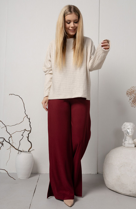 Модный, обьмный свитшот из красивого структурного трикотажа "коса" с прямыми спущенными рукавами.