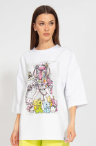 Свитшот с оригинальными подрезами пастельных тонов по переду и спинке, прямого силуэта, с длинным рукавом на манжете.