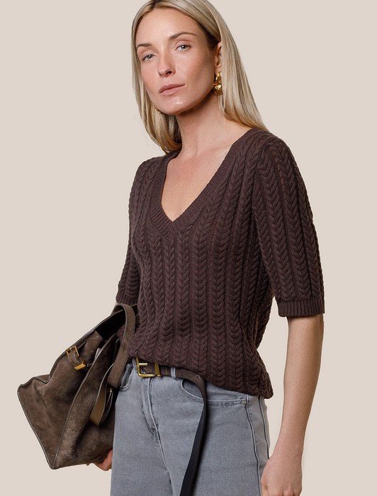Джемпер фактурной вязки из хлопка с кашемиром