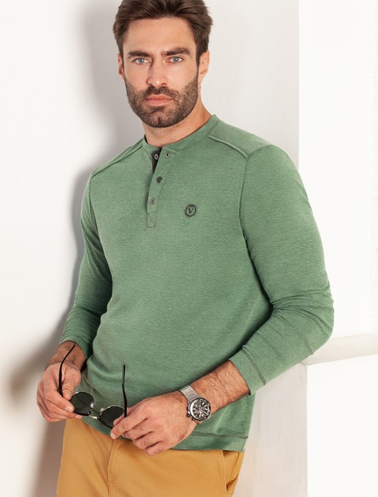 Совместные покупки Омск Мужская одежда Футболки — Джемпер хенли из полотна пике с меланжевым плетением с эластаном