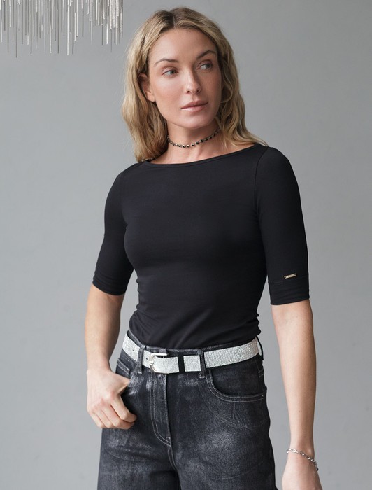 Состав: 92%Хлопок 8%ПУ Плотность: 170 Г/м2Футболка выполнена из премиального хлопка с добавлением эластана.Гладкий трикотаж обеспечит гарантированный комфорт и удобство в использовании. На рукаве металлическая нашивка с логотипом бренда. Издели будет хорошо сочетаться с любыми низами, жилетками и кардиганами, став выгодной инвестицией в базовый гардероб.